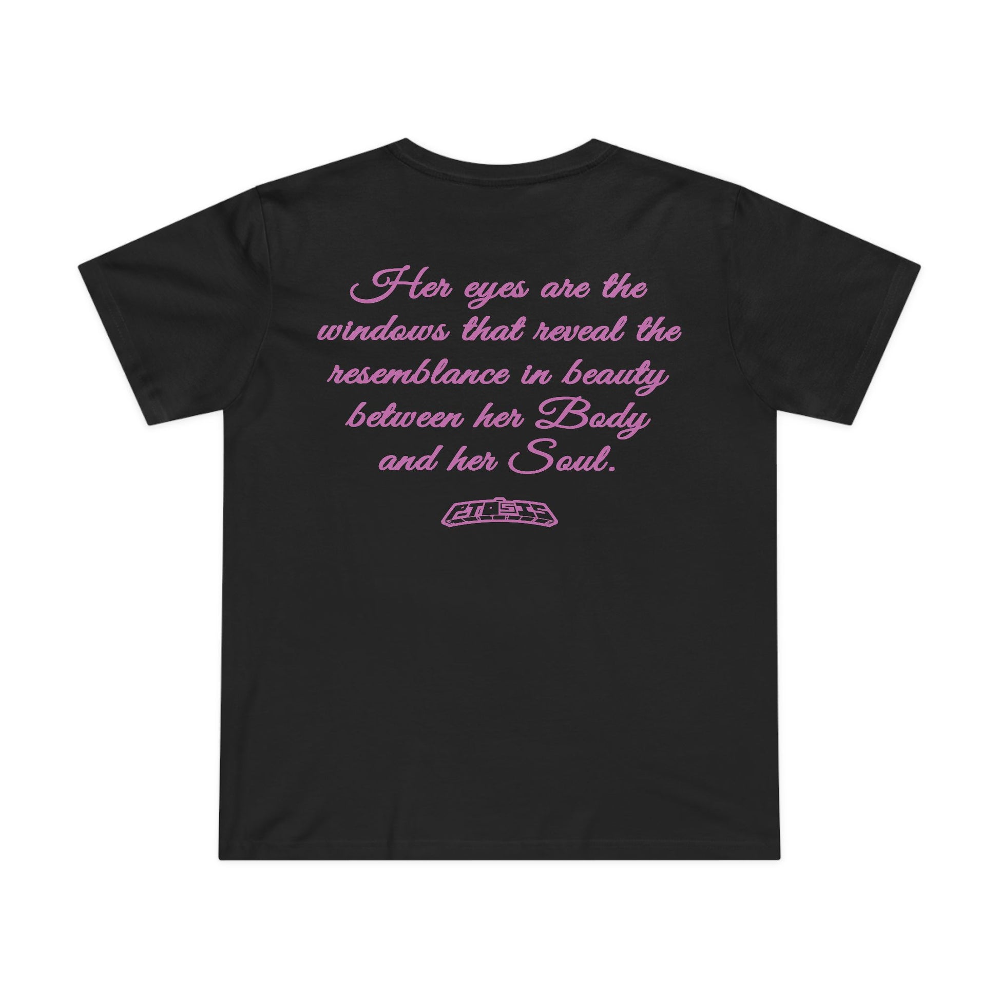 The definition of Her Eyes are printed on the back of this T-Shirt along with the arched Ptosis Clothing logo printed on the left chest area.